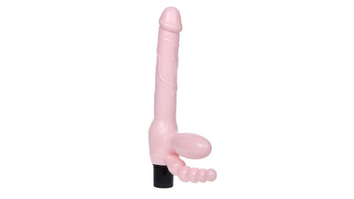Es un revolucionario arnés para la mujer sin correas y con vibrador incorporado además de un estimulador anal.