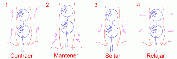Primero introduciendo una bola. La paciente tiene que ser capaz de contener una y que no se salga. Entonces se aconseja introducir la segunda bola una vez que aumenta la capacidad de contención vaginal. Asimismo existe un gel específico para facilitar la introducción.