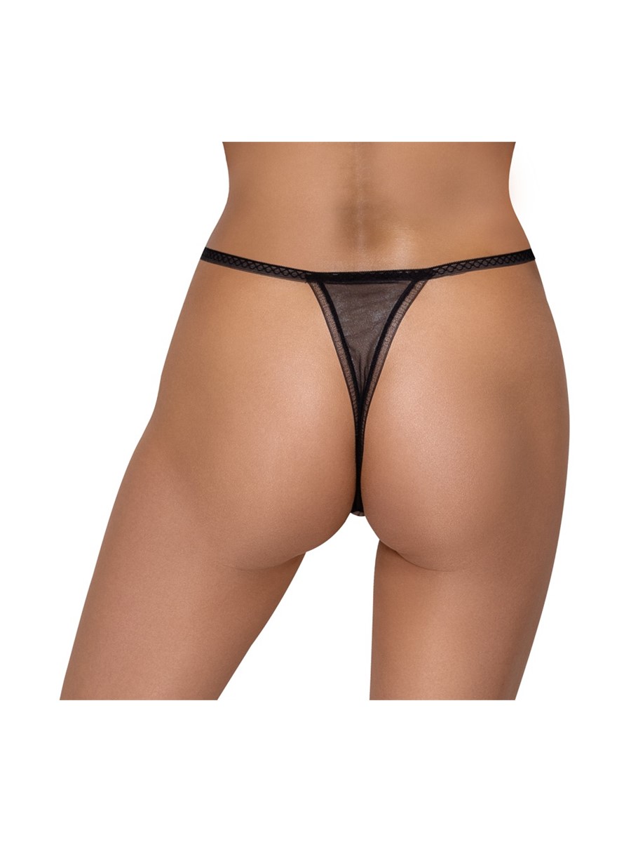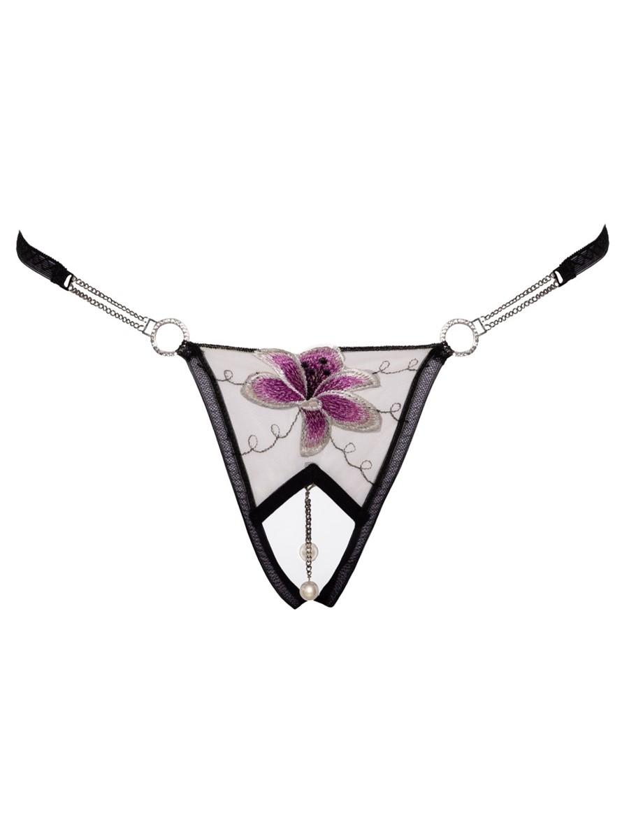 Tanga Rio ouvert de Cottelli Lencería confeccionada en fina red de tul con hermosas flores y delicados bordados en el seductor frente abierto.
