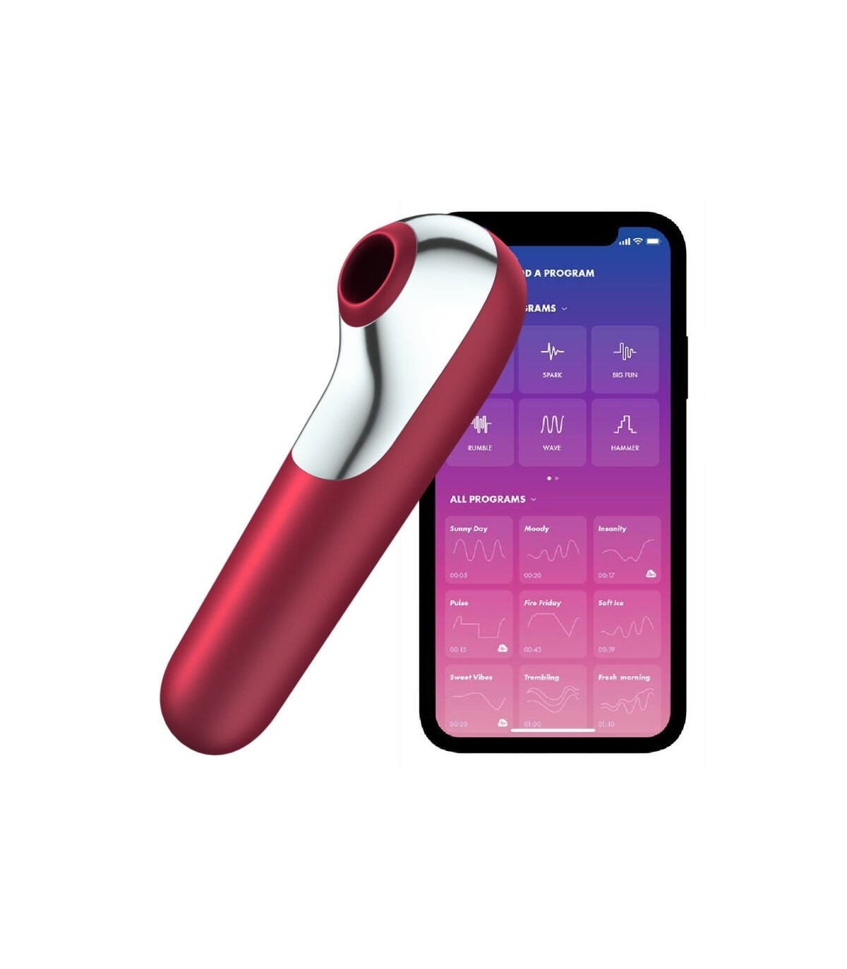 Dual Love se puede controlar tanto a través del intuitivo panel de control como a través de la aplicación Satisfyer Connect, disponible de forma gratuita para Android, iOS y Apple Watch. Con la aplicación no solo podrás controlar el dispositivo de forma remota o cedérselo a tu pareja, sino que también podrás crear tus propios programas de vibración y compartirlos con otros usuarios.