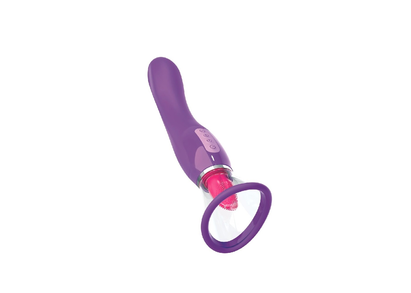 El otro lado mima el clítoris, los pezones y otros puntos calientes con un estimulador de lengua en 7 modos de movimiento y una ventosa con 3 patrones de succión que crea un vacío con solo presionar un botón. Este también dispone de una función de liberación de vacío y garantiza así una diversión segura. Todas las funciones se pueden controlar cómodamente por separado mediante botones.