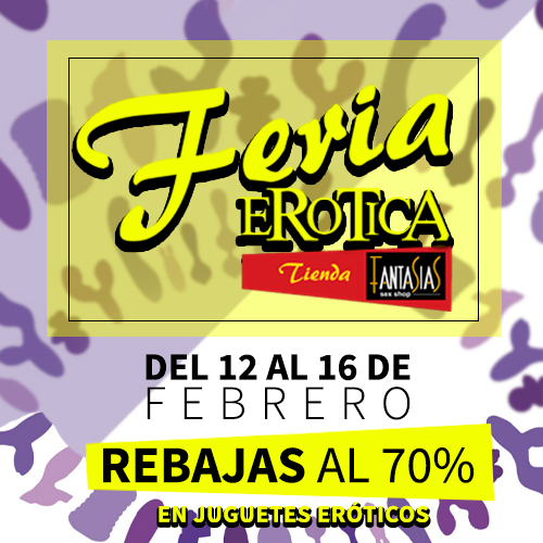 Nuestra ya clásica Feria Erótica trae esta vez productos rebajados hasta el 70 por ciento. ¿Quieres renovar tu vibrador?, ven y encontrarás uno con mas velocidades. ¿Quieres nuevas sensaciones?, ven y llévate algunos de nuestros productos BDSM. ¿Necesitas caricias más placenteras?, en nuestra sección de geles hay uno indicado para ti.