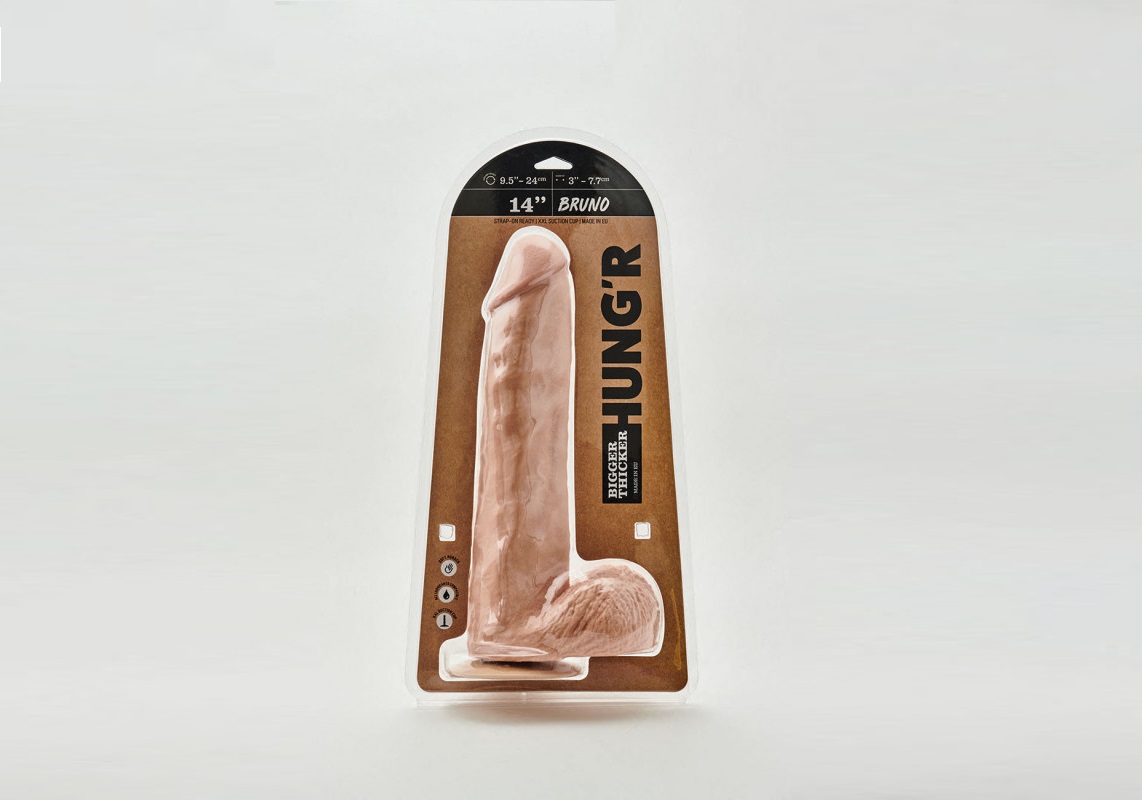 HUNG’R Bruno. Disfruta del bienestar que te proporciona este excepcional consolador con ventosa. Con un diámetro de 77 mm y una longitud de inserción de 360 mm, este consolador de color piel. Se puede limpiar con agua, pero recuerda enjuagar tu sextoy antes y después de cada uso.