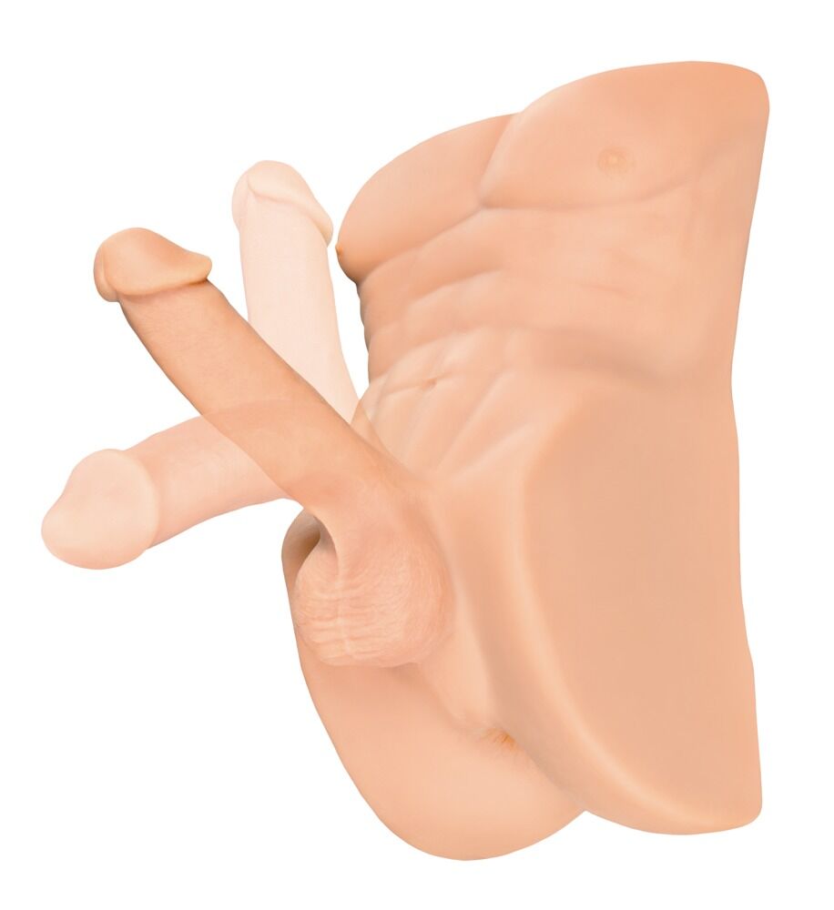 Hecho de Fanta Flesh como la piel, todo parece absolutamente real. Además, el material suave y flexible absorbe rápidamente la temperatura corporal. Con un peso de casi 5 kg, el torso se apoya de forma firme y antideslizante en cualquier superficie lisa, de modo que el robusto pene móvil puede montarse en cualquier posición.