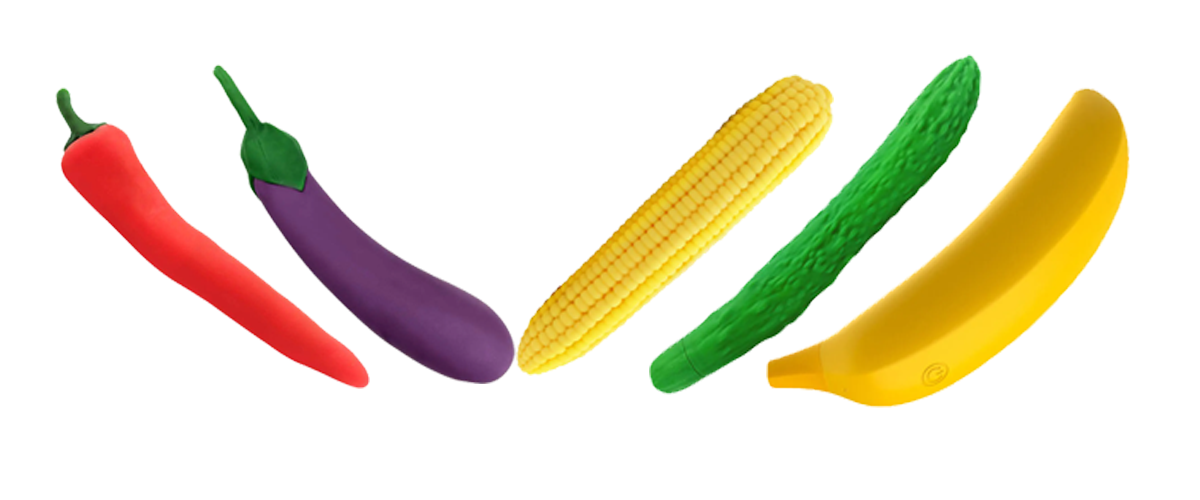 Estas verduras son las Vibrating Veggies de Gemüse. Silicona de tacto suave con motor vibrador de alta potencia y recargable con cable USB. Disponible en cinco tipos diferentes de vegetales: pepino, mazorca de maíz, berenjena y por último, pero no menos importante, el pimiento rojo.