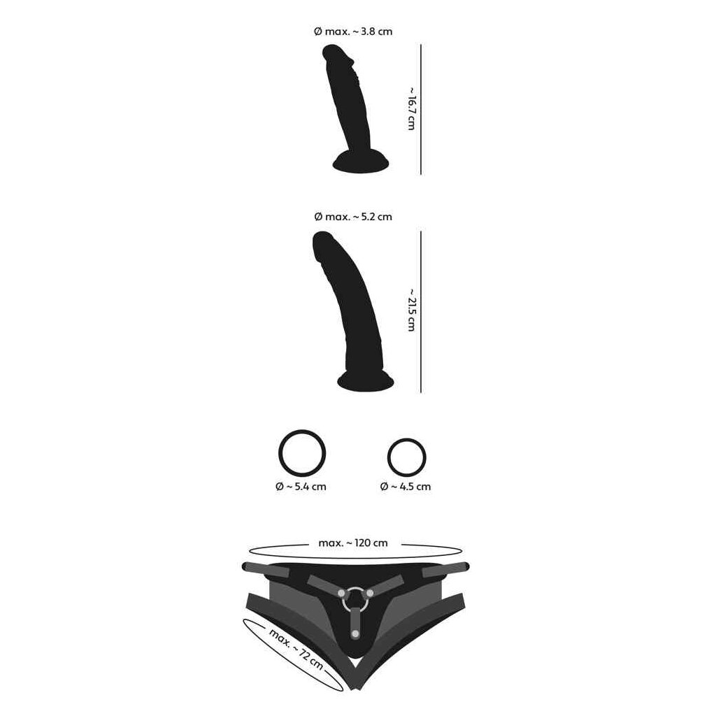 Ambos consoladores tienen una forma de pene realista y tienen una ventosa, lo que significa que se pueden usar solos e incluso con las manos libres. El arnés con correas es ajustable, flexible (la circunferencia de la cadera se puede ajustar hasta un máximo de 120 cm, la circunferencia del muslo es flexible, hasta un máximo de 72 cm) y se puede usar con otros vibradores/dildos que tengan una ventosa.